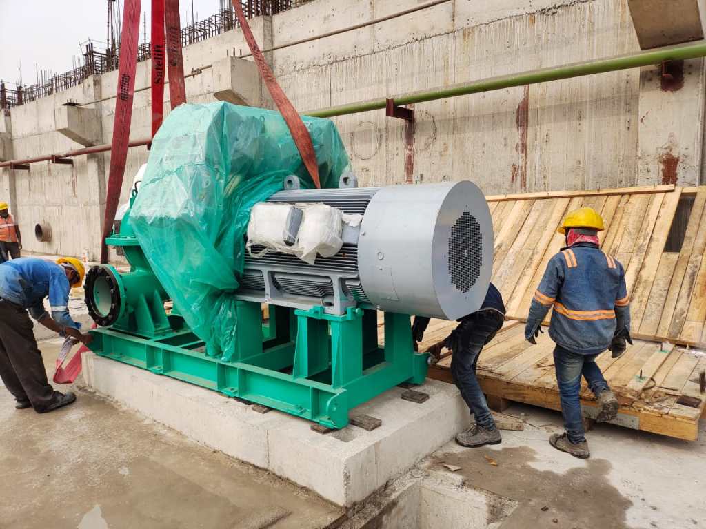 First pump at Cooling tower 2 is Installed. Cooling water pumps (CWP) provide the fresh water to cool the exhaust steam in the condenser and pump it back to the wet cooling tower or the outlet of open cooling system. The major characteristic of the CWP is their high flow.